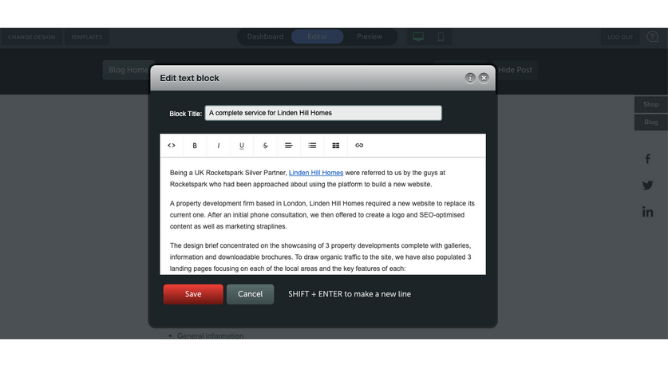 In contrast, our Rocketspark websites have been created with care. We think about every ingredient which includes: layout, signposting, navigation, calls to action, tag lines, images and page content.