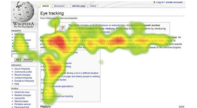 The obvious advantage of a heatmap is that you can quickly interpret where the eye is scanning - the red/warmer areas indicate the most engagement and attention whilst the cooler colours indicate less or indeed no engagement at all.
