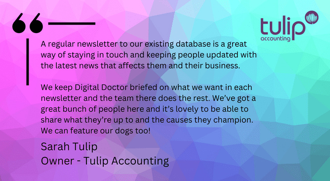Don’t worry - here at the Digital Doctor we offer email marketing services and will happily build out a newsletter from as little as £225 + VAT. That also includes selecting the right imagery and writing the content for you.