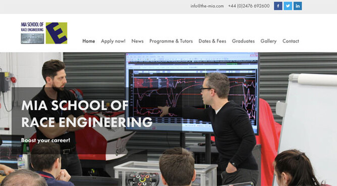Incidentally, another MIA website, the School of Race Mechanics was also built at the same time and Rocketspark made things simple by copying the entire site structure saving a huge amount of time!