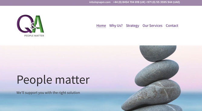Q&A People Matter is a group of international businesses with offices in London, Surrey, Isle of Man, UAE and KSA and provides strategic international HR services including (but not limited to) HR support, Compensation & Benefits, Payroll and software training. The challenge was to combine several standalone sites and revise the content to ensure a consistent message and 'voice' throughout.
